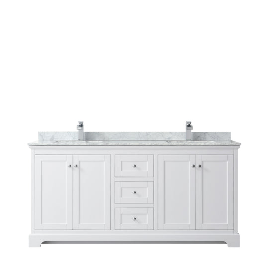 Avery 72" Double Vanity in White, Top, Square Sinks, No Mirror