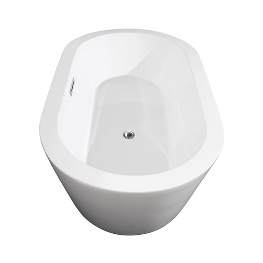 60" Freestanding Bathtub in White, Overflow Trim in Chrome