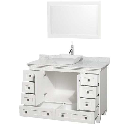 Acclaim 48" Single Vanity in White, Carrara Cultured Marble Top, 24" Mirror