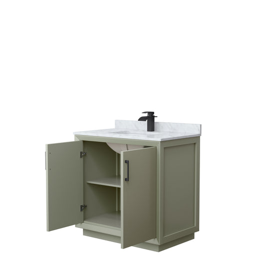 Strada 36" Single Vanity in Green, White Carrara Marble Top, Sink, Black Trim