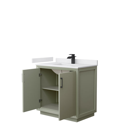 Strada 36" Single Vanity in Green, White Marble Top, Sink, Black Trim