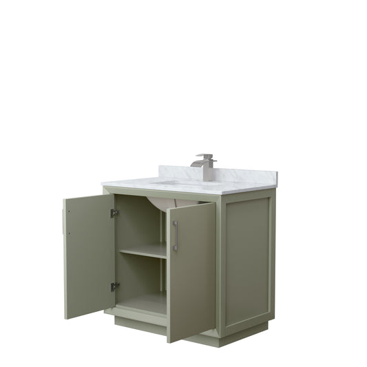 Strada 36" Single Vanity in Green, Carrara Marble Top, Sink, Nickel Trim