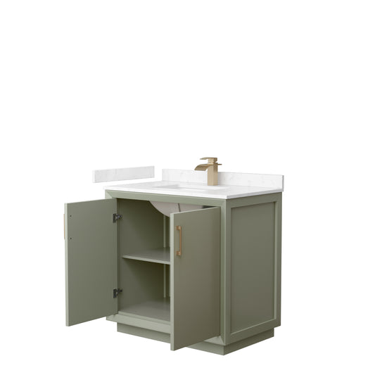 Strada 36" Single Vanity in Green, Carrara Marble Top, Sink, Bronze Trim