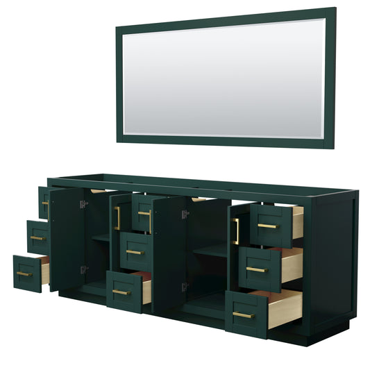 Miranda 84" Double Vanity in Green, No Top, Bruished Gold Trim, 70" Mirror