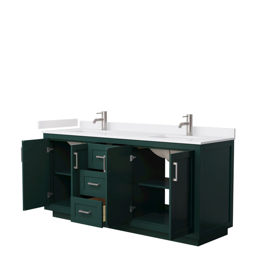 Miranda 72" Double Vanity in Green, White Cultured Marble Top, Nickel Trim