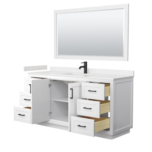 Miranda 66" Single Vanity in White, Top, Square Matte Black Trim, 58" Mirror
