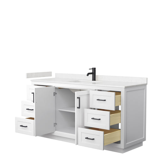 Miranda 66" Single Vanity in White, Top, Square Sink, Matte Black Trim