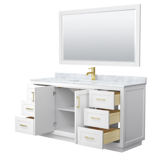 Miranda 66" Single Vanity in White, Top, Square Brushed Gold Trim, 58" Mirror