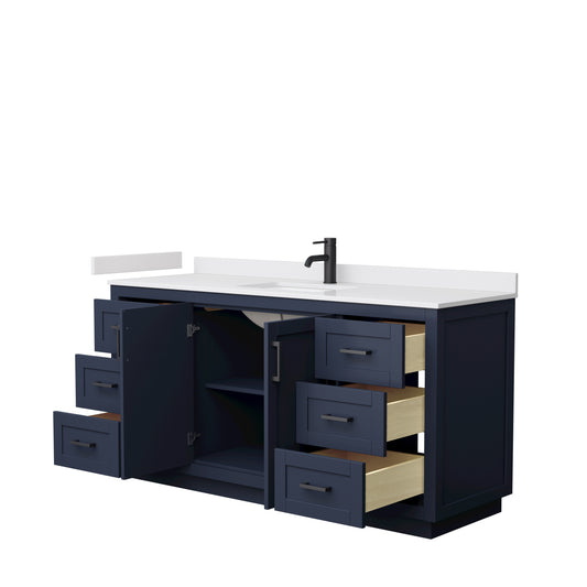 Miranda 66" Single Vanity in Dark Blue, White Cultured Marble Top, Black Trim
