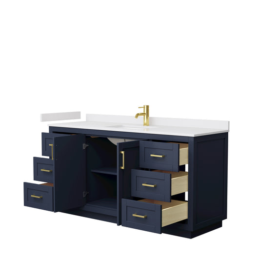 Miranda 66" Single Vanity in Dark Blue, White Cultured Marble Top, Gold Trim
