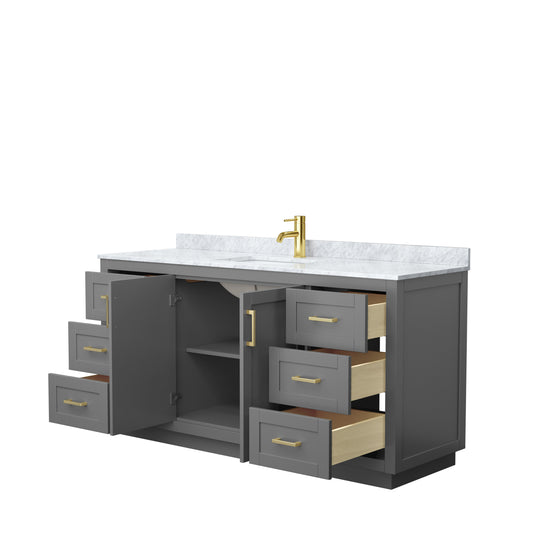 Miranda 66" Single Vanity in Dark Gray, Carrara Cultured Marble Top, Gold Trim