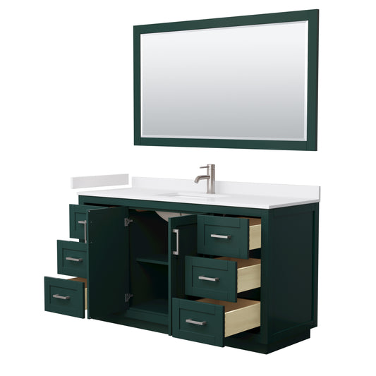 Miranda 60" Single Vanity in Green, White Cultured Marble Top, Nickel Trim