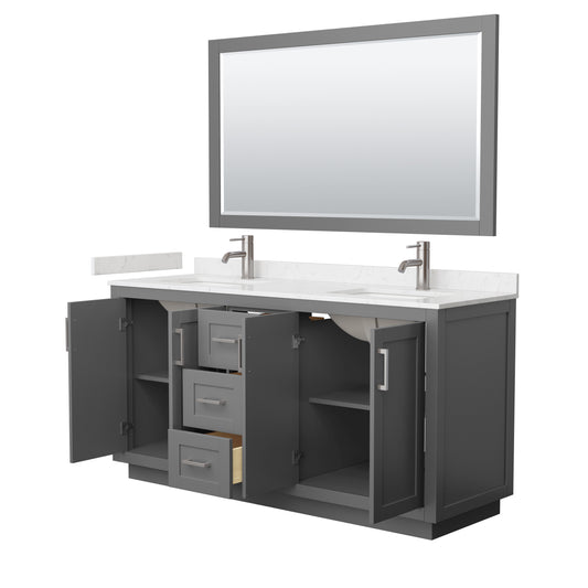 Miranda 66" Dark Gray Double Vanity, Carrara Marble Top, Nickel Trim, 58" Mirror