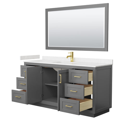 Miranda 66" Dark Gray Single Vanity, Carrara Marble Top, Gold Trim, 58" Mirror