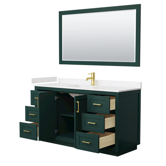 Miranda 60" Single Vanity in Green, Top, Square Brushed Gold Trim, 58" Mirror