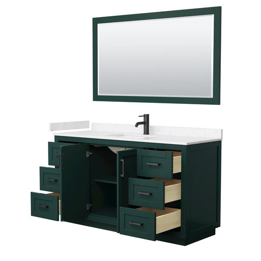 Miranda 60" Single Vanity in Green, Top, Square Matte Black Trim, 58" Mirror