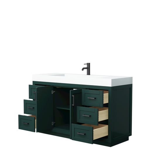 Miranda 60" Single Vanity in Green, Top, Square Sink, Matte Black Trim