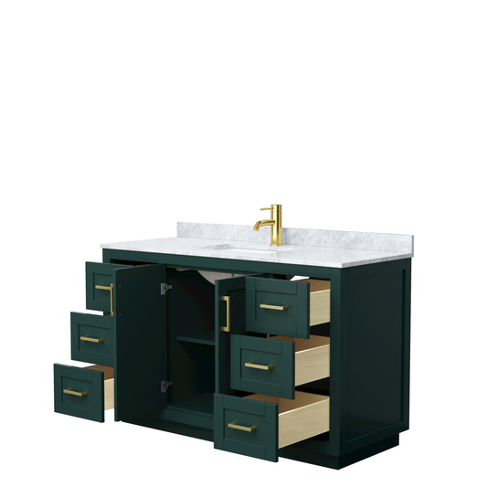 Miranda 54" Single Vanity in Green, Top, Square Sink, Brushed Gold Trim
