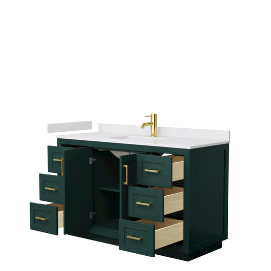 Miranda 54" Single Vanity in Green, White Cultured Marble Top, Gold Trim