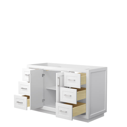 Miranda 54" Single Vanity in White, No Top, No Sink, Brushed Nickel Trim