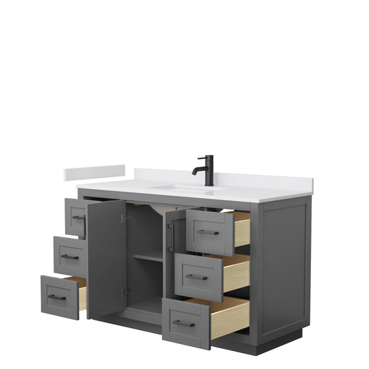 Miranda 54" Single Vanity in Dark Gray, White Cultured Marble Top, Black Trim