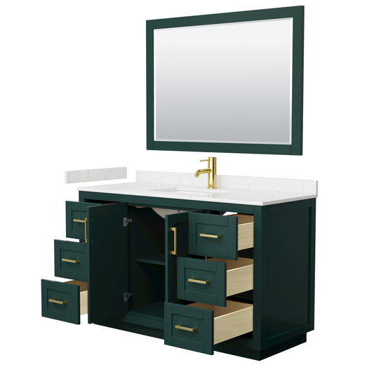 Miranda 54" Single Vanity in Green, Carrara Cultured Marble Top, Gold Trim