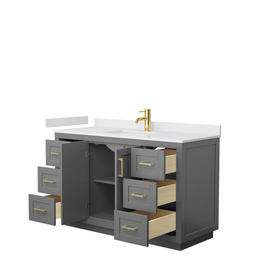 Miranda 54" Single Vanity in Dark Gray, White Cultured Marble Top, Gold Trim