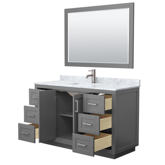 Miranda 54" Single Vanity in Dark Gray, White Marble Top, Black Trim, 46" Mirror
