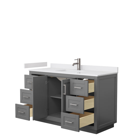 Miranda 54" Single Vanity in Dark Gray, White Cultured Marble Top, Nickel Trim