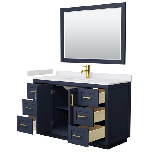 Miranda 54" Single Vanity in Dark Blue, Top, Square Sink, Brushed Gold Trim