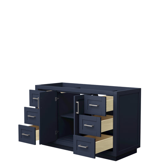 Miranda 54" Single Vanity in Dark Blue, No Top, No Sink, Brushed Nickel Trim