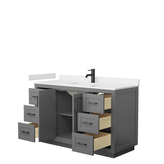Miranda 54" Single Vanity in Dark Gray, Carrara Cultured Marble Top, Black Trim