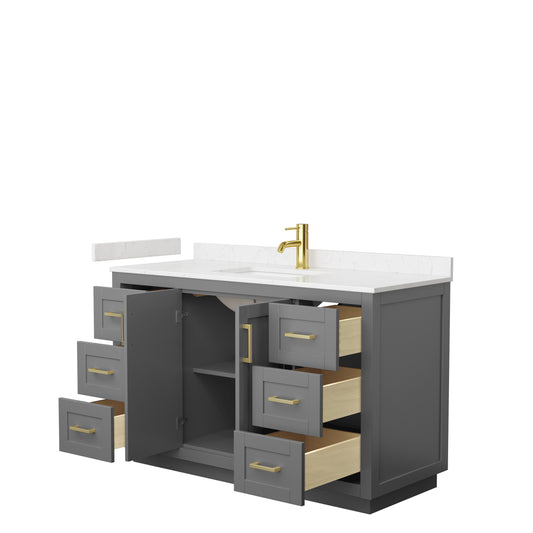 Miranda 54" Single Vanity in Dark Gray, Carrara Cultured Marble Top, Gold Trim