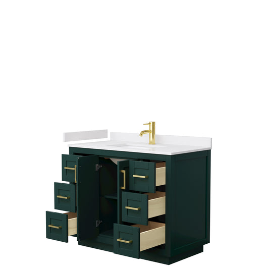 Miranda 42" Single Vanity in Green, White Cultured Marble Top, Gold Trim