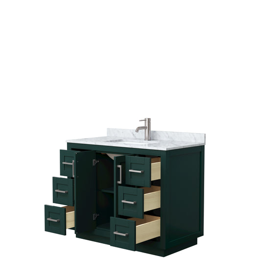 Miranda 42" Single Vanity in Green, White Marble Top, Nickel Trim, 34" Mirror