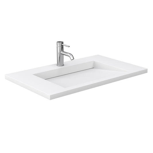 Miranda 36" Single Vanity in Green, 1.25" White Top, Integrated Matte Black Trim