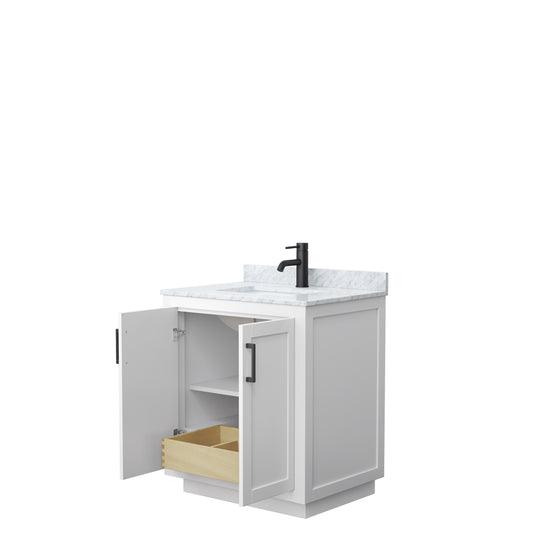 Miranda 30" Single Vanity in White, No Top, No Sink, Matte Black Trim