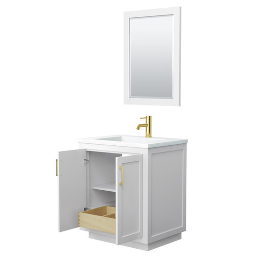 Miranda 30" Single Vanity in White, Top, Square Brushed Gold Trim, 24" Mirror