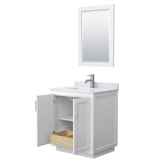 Miranda 30" Single Vanity in White, Carrara Marble Top, Nickel Trim, 24" Mirror