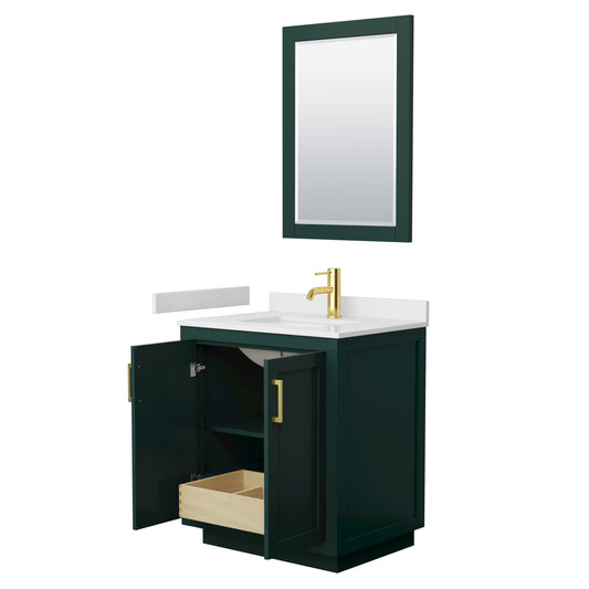 Miranda 30" Single Vanity in Green, Top, Square Brushed Gold Trim, 24" Mirror