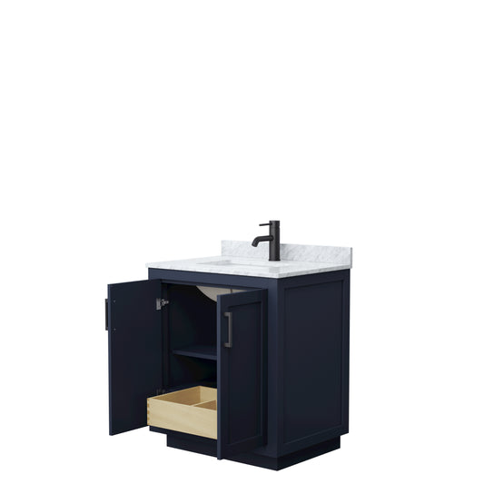 Miranda 30" Single Vanity in Dark Blue, Carrara Cultured Marble Top, Black Trim