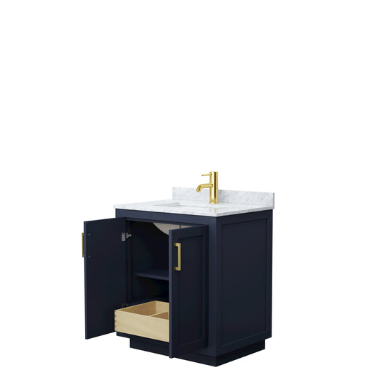 Miranda 30" Single Vanity in Dark Blue, Carrara Cultured Marble Top, Gold Trim