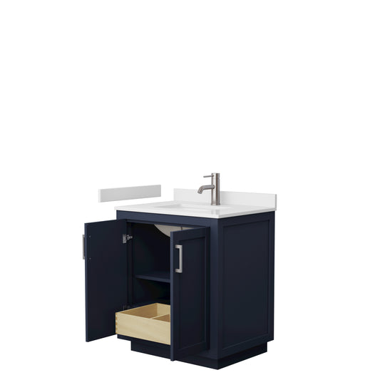 Miranda 30" Single Vanity in Dark Blue, 1.25" White Top, Integrated Nickel Trim