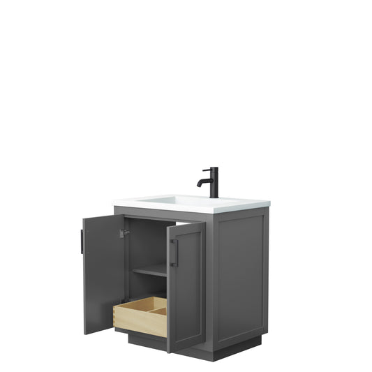 Miranda 30" Single Vanity in Dark Gray, 1.25" White Top, Integrated Black Trim