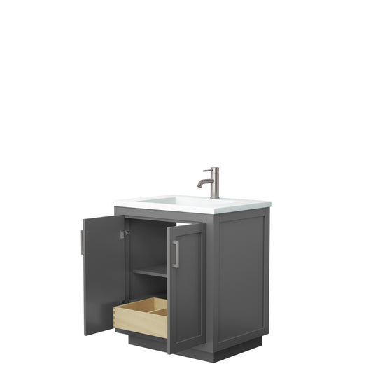 Miranda 30" Single Vanity in Dark Gray, 1.25" White Top, Integrated Nickel Trim