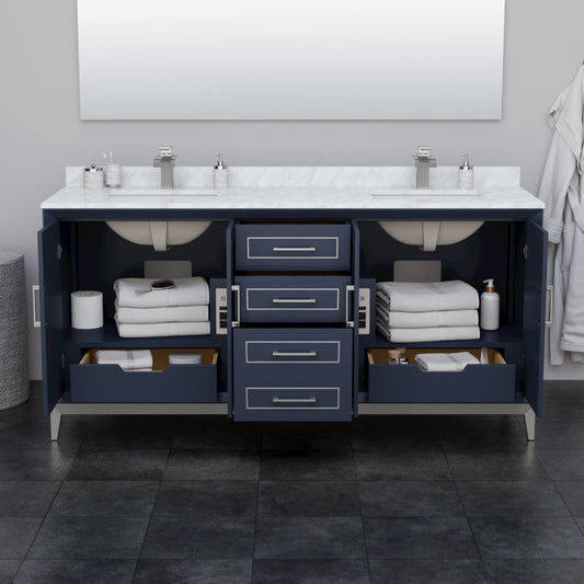 Marlena 72 Inch Double Vanity in Dark Blue, No Top, No Sink, Brushed Nickel Trim