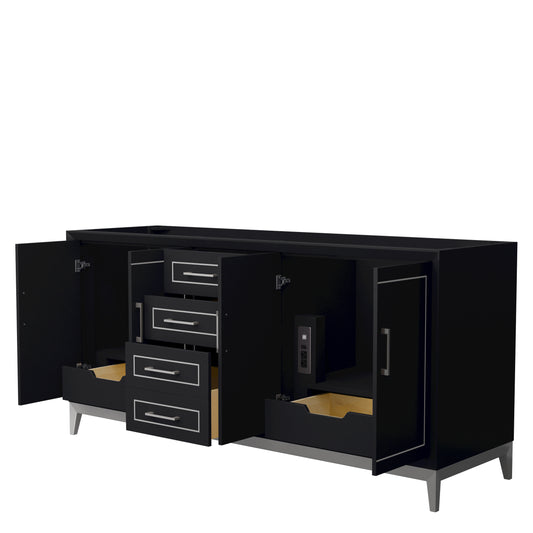 Marlena 72 Inch Double Vanity in Black, No Top, No Sink, Brushed Nickel Trim