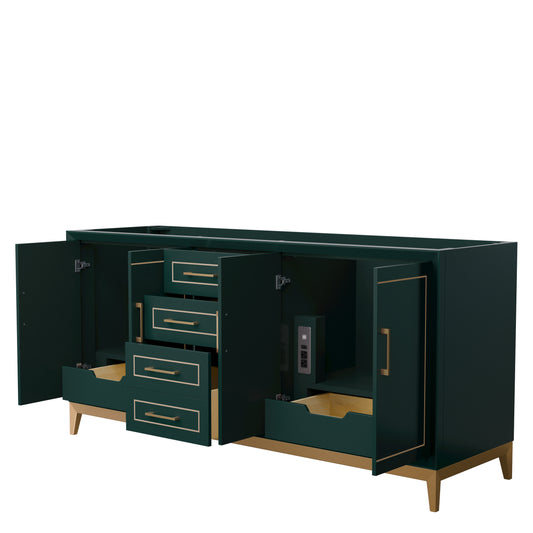 Marlena 72 Inch Double Vanity in Green, No Top, No Sink, Satin Bronze Trim