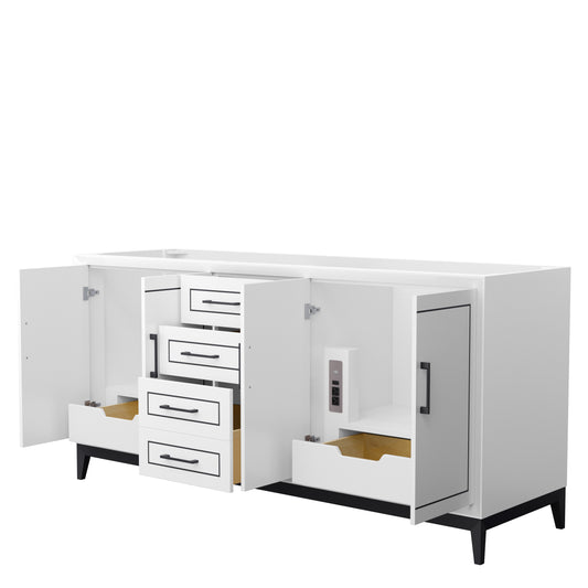 Marlena 72 Inch Double Vanity in White, No Top, No Sink, Matte Black Trim