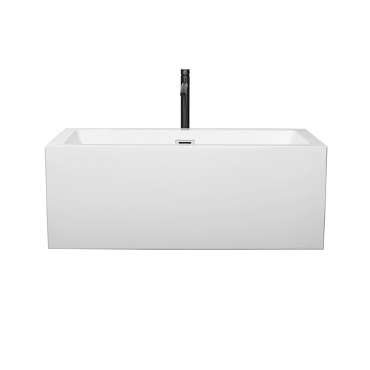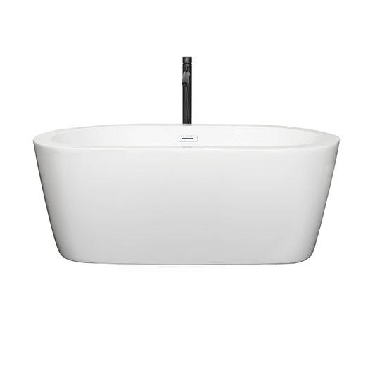Melody 60" Freestanding Bathtub in White, Overflow Trim in Matte Black
